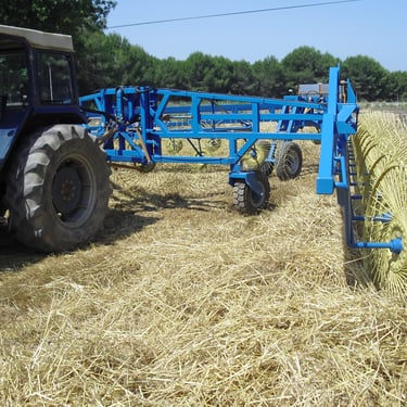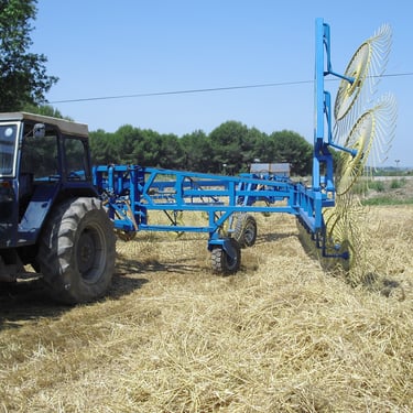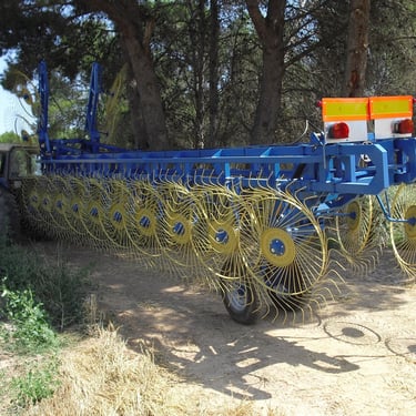 Todos los modelos 11.10.3 o 11.10.0 llevan por defecto un cabezal nivelante que permite al tractorista llevar el rastrillo paralelo al suelo comandado desde el tractor.